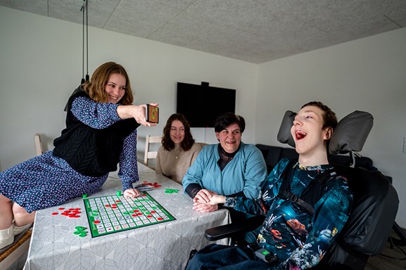 - Aksel er vild med at se Lykkehjulet. Programmet passer godt til ham, selv om han bliver lidt træt til sidst i det, fortæller Linda Jensen om sin 15-årige søn, der er multihandicappet.