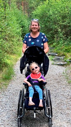 Hun kan udtale få ord, men har intet sprog som sådan, ingen gangfunktion, meget begrænset gribefunktion og er helt afhængig af hjælp. Og det er lige præcis det, Anni kan bidrage med. Hun er en stor hjælp for familien og lader sig ikke slå ud af diagnosen og frem tidsudsigterne. Hun tager en dag ad gangen.